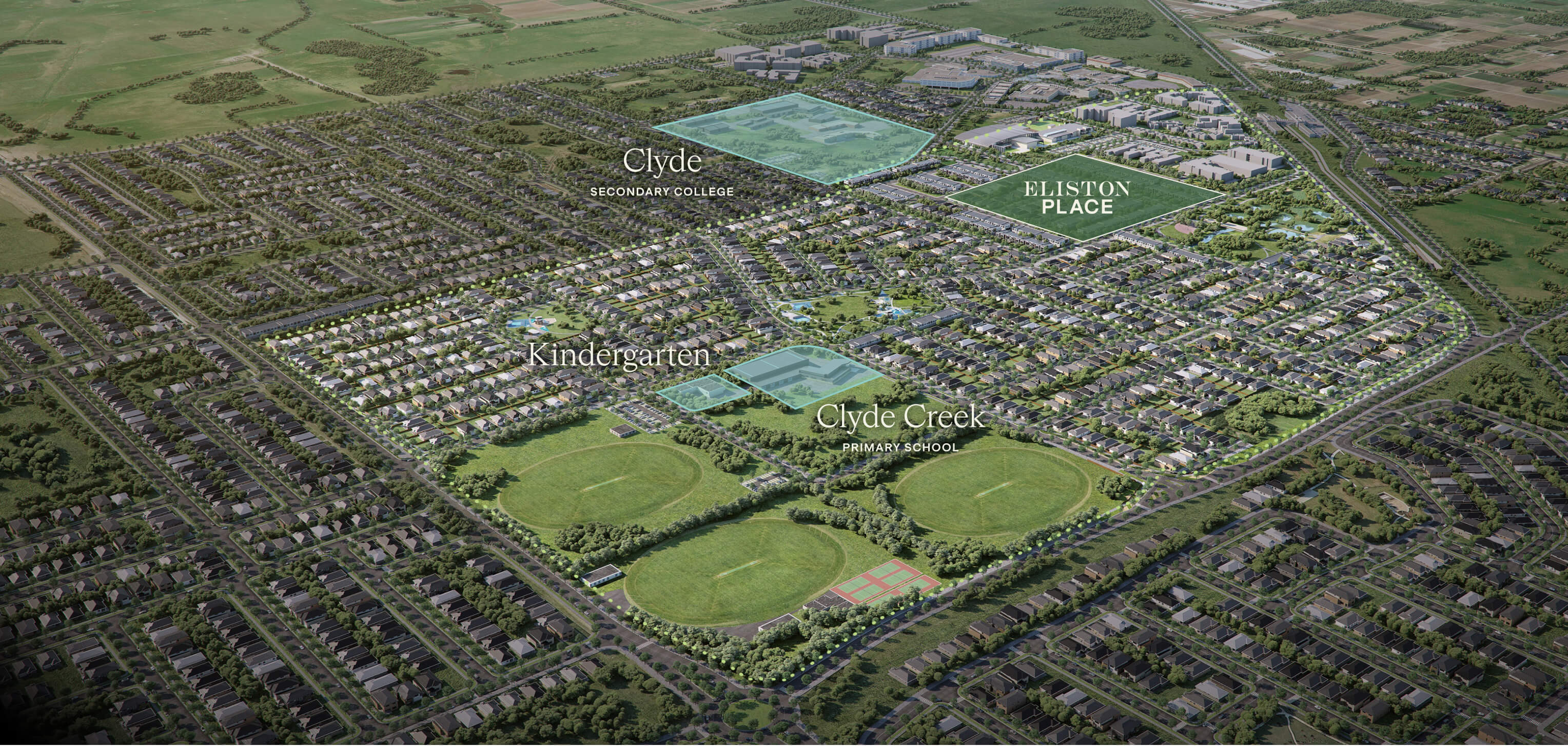 Thoughtful planning and a design focus on outdoor living has resulted in all neighbourhoods at Eliston being linked through generous streets and bike lanes. This beautiful masterplanned community is built around 3 parklands and 3 major sports ovals, for all year round activity as well as gardens and wetlands. Lifelong learning is important in Eliston, with a kindergarten, Clyde Creek Primary and Clyde Secondary College now open.